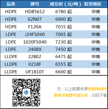 今日PE现货市场延续震荡行情。石化延续去库操作,不过下游刚性需求利好不足,原油及期货震荡回调,难以刺激现货上涨,市场成交气氛一般。其中华北市场LLDPE主流报6500-6550元/吨,LDPE主流报7400-7500元/吨,HDPE拉丝主流7200-7300元/吨;华东市场LLDPE主流报6500-6600元/吨,LDPE主流报7400-7500元/吨,HDPE拉丝主流报7250-7300元/吨;华南市场LLDPE主流报6800-6900元/吨,LDPE主流报7400-7500元/吨,HDPE拉丝主流报7400-7500元/吨。