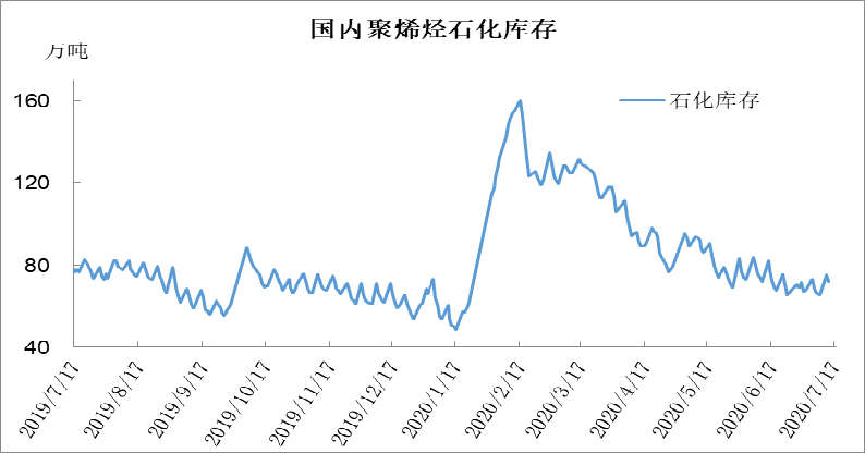 本周石化去库存速度明显放缓,接近停滞状态。本周初石化库存在74万吨,周五库存在72.5万吨,较去年同期低4.5万吨。本周石化去库存速度明显放缓,周内仅仅去库1.5万吨,远低于正常水平。目前依然处于需求淡季,除抗洪塑编袋等个别行业需求较好外,多数传统下游偏弱;检修利好仍在但接近尾声,后期新装置扩能压力较大,预计后期石化去库存难度依然较大。