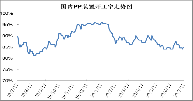本周PP开工率变化不大,维持85%左右的低位水平。本周锦西石化、茂名石化及荆门石化停车检修,不过久泰能源、燕山石化等前期检修装置陆续重启,二者抵消后PP开工率变化不大,依然在85%附近的低位水平,且新装置尚未投产,供应压力不大,不过下旬之后重启装置增多,开工率有望明显提升。