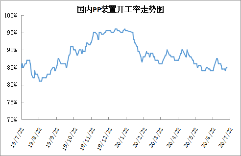 本周PP开工率变化不大,维持85%左右的低位水平。近期锦西石化、茂名石化及荆门石化停车检修,不过久泰能源、燕山石化等前期检修装置陆续重启,二者抵消后PP开工率变化不大,依然在85%附近的低位水平,且新装置尚未投产,供应压力不大,不过下旬之后重启装置增多,开工率有望明显提升。