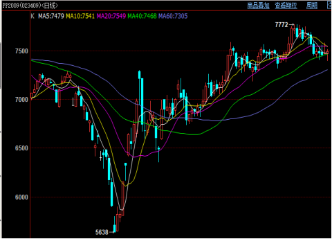 今天PP期货跌势暂止,收出下影阳线。连续多日下跌后今天PP跌势放缓,在7400附近获得支撑,站上40日均线,短期或震荡消化前期涨幅,不过分时图继续下行,后期PP依然易跌难涨。