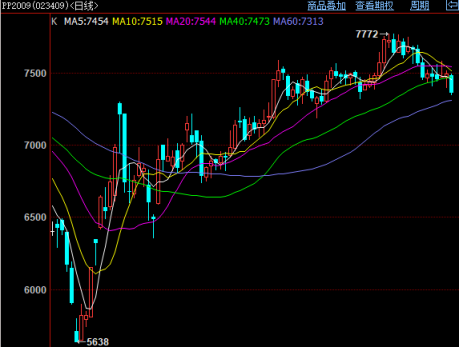 今天PP期货重拾跌势且加速下行。受政治局势紧张及油价回落影响,PP期价再次大跌,今天跌破7400大关,创出近两周来新低。目前PP短期均线发散向下,MACD绿柱明显扩张,下行通道通畅,后期仍有下跌空间,关注7300附近支撑力度。