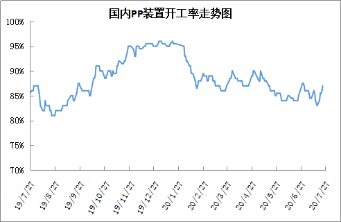 近期PP开工率明显提升,已经站上85%大关。周初燕山石化、中原石化及茂名石化部分装置检修,但是东莞巨正源重启,PP开工率依然维持小幅上升趋势,并且进入8月份之后,PP开工率有望逐渐站上90%大关。