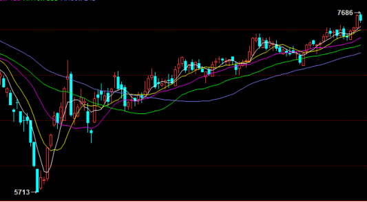 PP期货主力01合约突破上行后回调,收出小阴线,尾盘收于7600附近;技术面来看,虽然PP回调,但是上行通道通畅,下方均线支撑力度较强,多头资金集中,短期依然看涨为主。