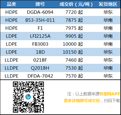 今日PE市场延续下跌行情,国际油价及期货跌幅缩窄,石化库降速虽然放缓,但是出厂价部分下调,打压市场下跌,成交气氛转弱。其中华北市场LLDPE主流7300-7400元/吨,LDPE主流报10100-10200元/吨,HDPE拉丝主流8700-8800元/吨;华东市场LLDPE主流报7500-7600元/吨,LDPE主流报10100-10400元/吨,HDPE拉丝主流报8900-9000元/吨;华南市场LLDPE主流报7800-7900元/吨,LDPE主流报10300-10400元/吨,HDPE拉丝主流报9000-9100元/吨。