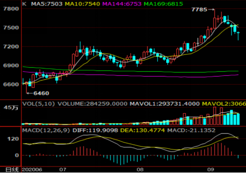PE期货01合约下跌0.94 %,收于7415。KDJ死叉继续向下扩散,MACD下跌绿柱变长,均线维持空头排列,不过日线收长下影线,抑制期货跌幅,建议当前位置谨慎追空,四季度石化检修结束+新增产能投产,期货维持逢高空思路,仅供参考。