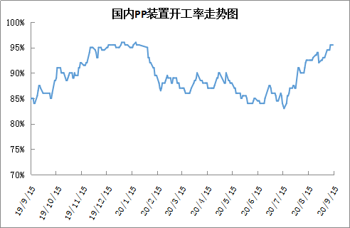 兰州石化临时检修,近期即将重启,目前PP开工率维持在95%左右的高位。新装置方面,宝来石化及中科炼化已经出料,泉州二期、烟台万华等装置也处于试车尾声,关注后期投产情况,届时供应压力加大。