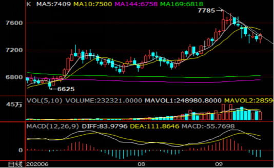 PE期货01合约小幅反弹0.67%,收于7430。盘面减仓反弹,KDJ指标拐头向上,MACD下跌绿柱变短,空头力量减弱,下游刚性需求仍有利好需求,国际油价上涨刺激期货反弹,不过石化供应上升,库存降速放缓,进口成本降至7500附近,四季度新增产能利空集中释放,建议期货7500-7700逢高空,仅供参考。