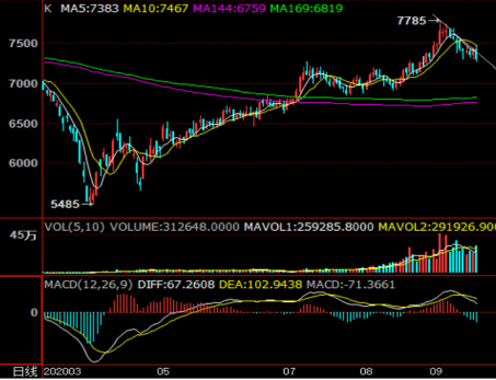 PE期货01合约冲高回落,收于7305。KDJ指标拐头向下,MACD下跌绿柱变长,空头力量占优,下游刚性需求仍有利好需求,石化及港口库存虽有上升但是没有明显累库,多空对峙,预计期货随原油波动震荡为主,四季度新增产能利空集中释放,而下游需求逐步下降,供需矛盾预期上升,打开下方下跌空间,仅供参考。