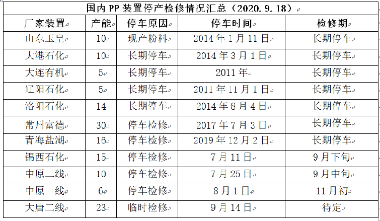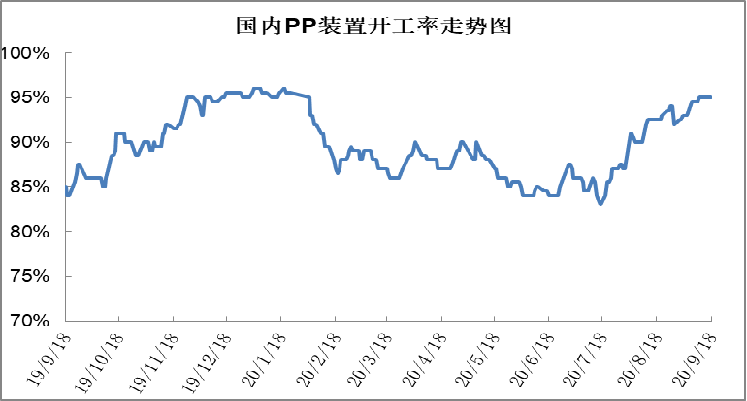 本周兰州石化临时检修,但随后重启,大唐二线临时检修,目前PP开工率依然居高不下,在95%附近。一方面PP开工率居高不下,另一方面新装置中中科炼化、宝来石化、泉州炼化等装置陆续投产,产能基数增大,供应压力逐渐显现。
