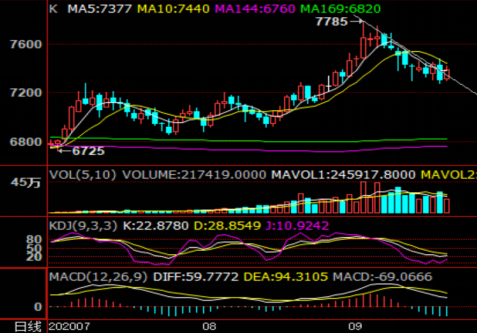 PE期货01合约横盘整理,收于7385。持仓量减少,KDJ指标拐头向上,MACD下跌绿柱变短,显示空头力量减弱,石化及港口库存未出现明显累库,以及国际油价反弹,抑制期货跌势,不过石化集中检修结束,新增产能投产利空逐渐释放,10月份以后下游需求有下降预期,四季度期货维持逢高空思路,仅供参考。