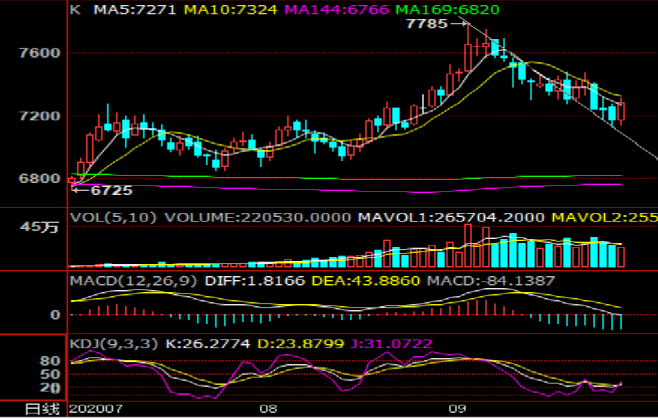 本周PE期货01合约延续下跌趋势,国际油价走弱,打压买家购买积极性,石化供应逐步上升,被迫降价去库存,打压期货下跌,不过下游刚需仍有利好支撑,进口套利窗口部分关闭,抑制货源供应,石化及港口库存未出现明显累库,周末盘面在7150附近止跌反弹,尽管KDJ指标拐头向上,MACD下跌绿柱变短,显示空头力量减弱,不过石化集中检修结束,新增产能投产利空逐渐释放,国庆假期石化大概率累库,10月份以后下游需求有下降预期,四季度期货维持反弹空思路,仅供参考。