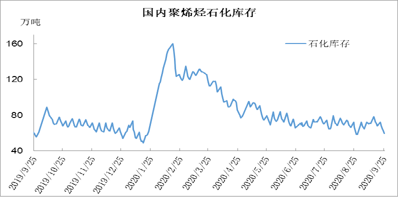 周五石化库存59.5万吨,较昨天下降3万吨,较去年同期高4万吨。经历了前期去库受阻后,本周石化去库存再次提速,春节后第二次跌破60万吨大关。虽然新装置开始试车,但目前为止除宝来之外尚未稳定生产,供应压力尚未体现;需求端成为近期去库主要动力,金九银十需求启动,并且国庆节临近,国庆备货增多,预计国庆节之前去库顺畅,但是国庆之后累库压力预期较大。