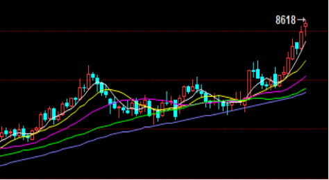 PP主力01合约继续大涨,一举突破8600这一两年来高点阻力位。目前PP均线发散向上,多头上涨趋势明显,并且突破前高阻力,上方想象空间较大,短期或依托5日均线继续走高。