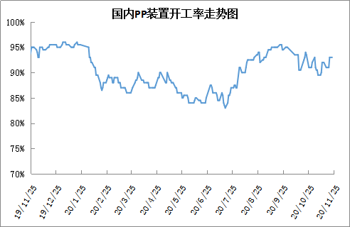 前期PP临时检修装置较多,开工率一度降至90%附近,上周末开始部分装置重启,开工率逐渐提升,目前在93%附近。新装置方面,泉州、中科等逐渐正常生产,烟台万华、大庆联谊等计划投产,后期供应压力逐渐增大。