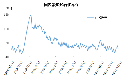 分析:周五库存63.5万吨,较昨天下降0.5万吨,较去年同期高1.5万吨。上本周初下游临时补库,但未能持续太久,市场成交重回冷清态势,去库存速度明显放缓,周中后三天仅累计去库3万吨。后期新装置陆续投产,供应压力渐增,去库压力难度增大。