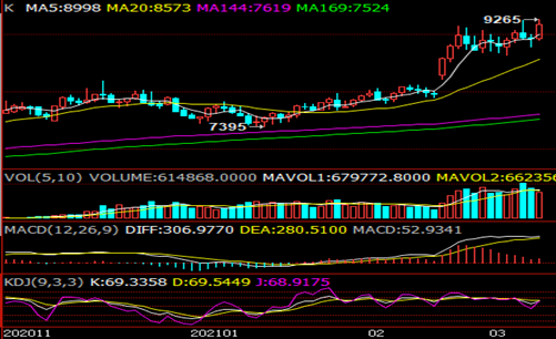 PE期货05合约高开高走,KDJ指标拐头向上,MACD上涨红柱变长,持仓量及成交量逐步下降,多头资金离场,空头尚未跟进,近期多空因素对峙,期货宽幅震荡,后市关注下游补库节奏,仅供参考。