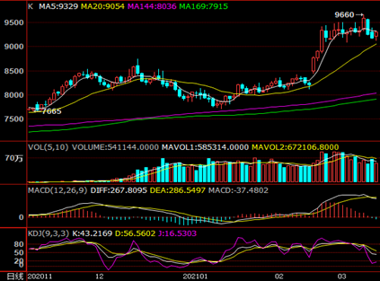 PP期货止跌反弹,KDJ指标拐头向上,MACD下跌绿柱变长,持仓量及成交量小幅下降。近期PP跟随整个商品市场大跌,不过暂未破位,关注9100-9150附近支撑力度。