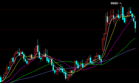 本周PP期货破位下行。周初PP一度大涨,但是并未突破前高,连续两天收出上影线之后开启跌势,连续四天下跌跌破前期9100附近支撑位,且跌破多条短期均线支撑。目前来看PP基本破位下行,商品市场有转势迹象,现货端偏弱,预计PP继续下行。
