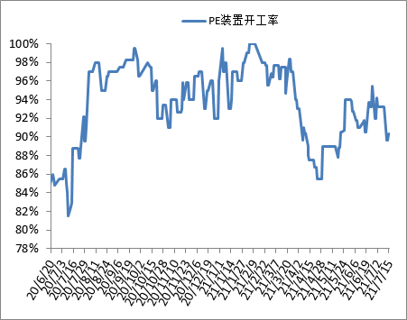 石化检修涉及产能230万吨左右,开工负荷90.3%左右,石化日产量在5.88万吨左右,130万吨大修装置计划7月18日前后开车,7月下旬新增大修产能90万吨左右,涉及全密度装置,持续15-30天,预计8月开始国内PE供应上升。
