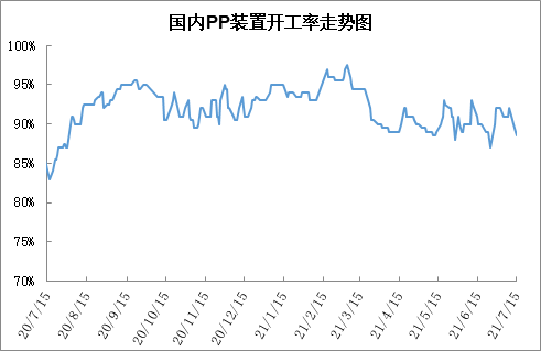 近期PP开工开始逐渐下降,开工率明显下。中旬开始中煤蒙大、内蒙古久泰、辽通化工、浦城能源陆续停车检修,PP开工率已经跌破90%大关,不过集中检修已经进入尾声,预计此次开工率下降之后后期逐渐提高。