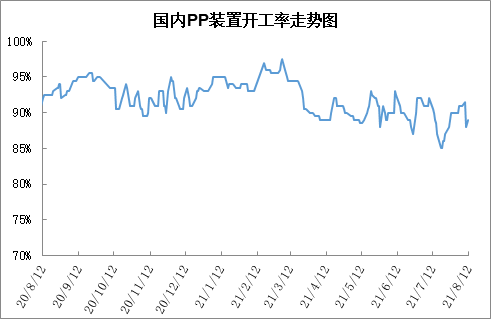 PP集中检修进入尾声,但是近期计划内检修+计划外检修较多,PP开工率再次跌破90%大关。虽然中煤榆林、内蒙古久泰等装置重启,但是中海油壳牌、宁波福基、中天合创等停车检修,PP开工率降至88%附近。新装置方面,古雷石化、青岛金能试车后尚未稳定量产,浙江石化二期等装置大概率推迟,供应压力暂未明显显现。
