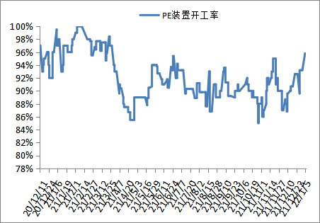 石化检修涉及产能减少至115万吨左右,开工负荷上升至95.8%左右,石化日产量上升至7.1万吨左右。国内PE新增大修装置较少,部分检修装置计划近期开车。
