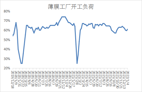 本周PE包装膜开工负荷小幅反弹,受节假日影响,春节前包装膜或迎来小旺季,规模企业开工率在6-7成,不过部分企业受自然环境及卫生事件影响,开工率一般在3-5成。
