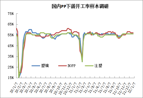 临近年底,PP需求不温不火,但是相比往年尤其是去年,明显有所下降,目前PP下游维持刚需为主,整体开工率接近60%。目前来看BOPP需求依然较好,订单可维持,尤其是年底节假日较多,礼物包装及假日消耗品等仍可维持,不过随着冬奥会临近,华北地区有停工限产预期。