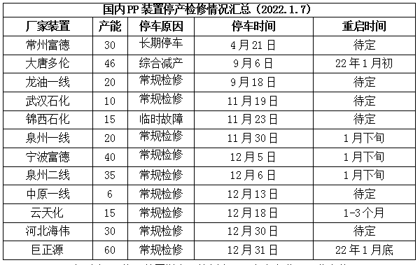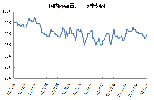 12月下旬以来PP停工装置增多,徐州海天、东方宏业、河北海伟、巨正源等陆续停车,PP开工率一度跌至88%以下,但是近期东方宏业、海国龙油等陆续重启,PP开工率小幅反弹,不过仍在90%以下,供应压力暂时不大。