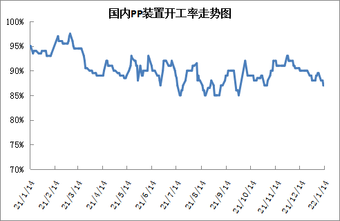 本周PP需求端出现一定变化,随着节日临近,PP下游刚需表现较好,华东地区下周开始陆续停工放假,近期正常生产;华北地区放假较晚,但是年后或受到冬奥会环保限产影响,限产时间较长,节前提前赶制订单。目前PP下游需求较好,但是有需求前置因素,节后随着环保限产政策推行,届时需求端或明显回落。