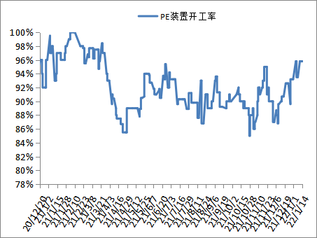 本周石化检修涉及产能减少至115万吨左右,开工负荷上升至95.8%左右,石化日产量上升至7.1万吨左右。国内PE新增大修装置减少,部分检修装置计划1月底开车。