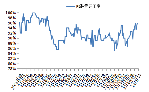 PE现货市场报价反弹50-100,国际油价及塑料期货反弹,刺激买家购买积极性,不过国内PE检修装置减少,PE出厂价涨势放缓,抑制现货市场涨幅,现货市场成交气氛一般。华北市场LLDPE主流8750-8850,LDPE主流11800-11900;华东市场LLDPE主流8700-8800,LDPE主流11850-12000,HDPE拉丝主流9100-9200;华南市场LLDPE主流8800-8900,LDPE主流12200-12500,HDPE拉丝主流9200-9300。