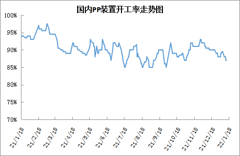 本周PP检修装置增多,开工率小幅下降。本周海国龙油、青海盐湖、中韩石化、中科炼化等装置陆续停车检修,PP开工率下降至88%附近,且近期暂无新装置投产,PP供应压力不大。
