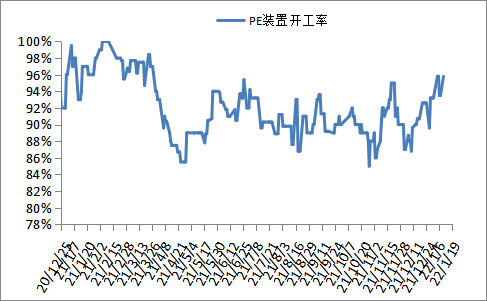 石化检修涉及产能在115万吨左右,开工负荷在95.8%左右,石化日产量在7万吨左右。国内PE新增大修装置减少,部分检修装置计划1月底开车。