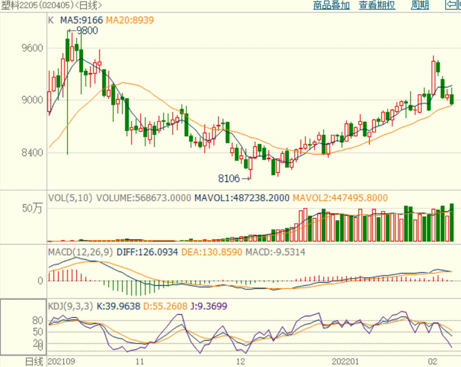 本周PE期货冲高回落,持仓量增加,成交量上升,国际原油及动力煤期货大涨,成本支撑推高期货盘面,不过国内PE春节假期大幅累库,下游需求偏弱,周末国际油价及动力煤期货走跌,成本支撑下降,预计塑料期货仍有调整风险,仅供参考。