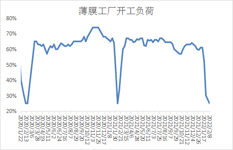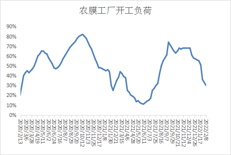 本周农膜整体开工负荷延续下降趋势,春节假期下游需求处于偏低水平,冬奥会环保督察弱化华北部分地区下游开工负荷。
