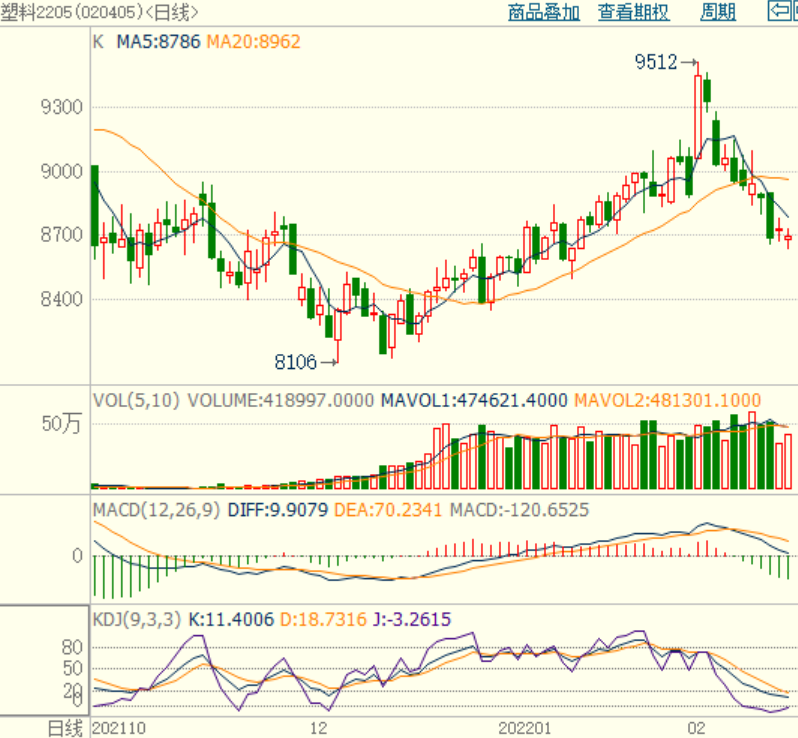 塑料期货05合约跌势放缓,持仓量及成交量上升,国际原油及动力煤期货维持高位,成本支撑较强,油制LL利润持续亏损,抑制期货盘面跌幅,下游需求恢复缓慢,PE两油及煤化工库存偏高并且消化缓慢,期货反弹动力同样不足,重点关注原油及PE库存变化,仅供参考。