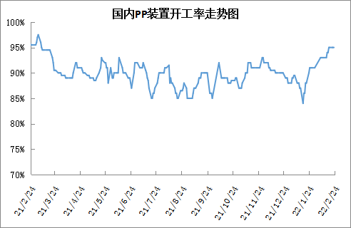 近期PP检修装置较少,开工率居高不下,目前维持95%附近高位水平,且新装置陆续投产,供应压力处于历史高位。虽然传闻上游企业亏损明显后期有降幅保价意向,但是目前暂未行动,供应压力暂未缓解。