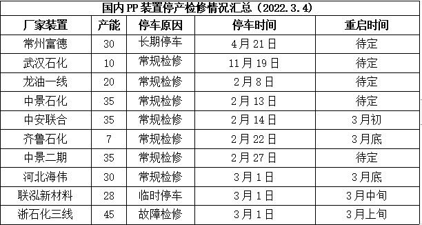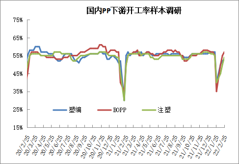 目前PP下游需求基本恢复状态,尤其是冬奥会后北方需求完成一波反弹补库。目前PP下游开工率在55%-60%之间,但是缺乏亮点,维持刚需为主。后期需求有望继续恢复,不过三月份北方冬残奥会仍有环保限产可能。