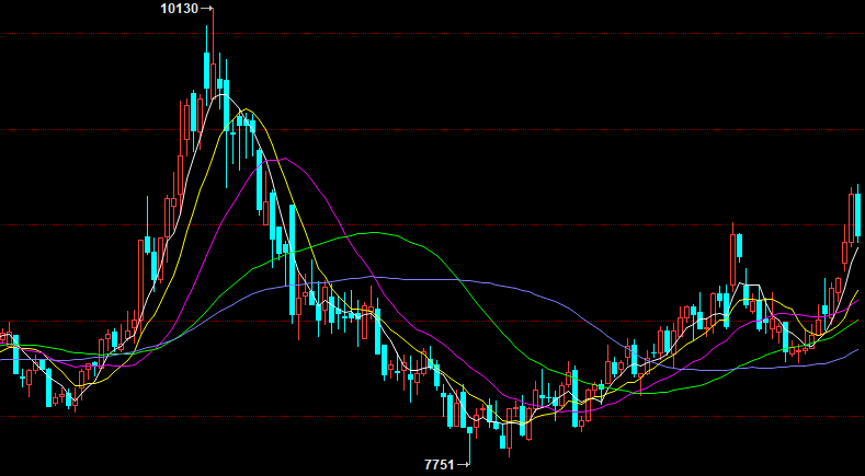 本周PP主力05合约大幅拉涨,一度突破9200大关,虽然周五回吐部分涨幅,但依然在9000附近。本周成本端驱动下化工大涨,现货基本面好转,PP开启大涨走势。目前PP均线发散向上,下方有五日均线支撑,在油价不崩的前提下,PP仍有上行可能。