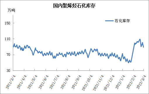 近期石化快速去库,目前已经跌破90万吨大关,创出春节后新低,甚至低于去年同期水平。近期石化快速去库得益于行情好转后下游补库增多,市场成交明显好转,石化库存慢慢流入社会库存。后期下游备货力度或减弱,但是考虑后期检修逐渐增多,预计库存维持正常去库水平。