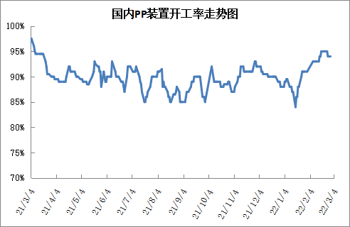 本周PP开工率变化不大,虽然开工率略有下移但是力度有限,目前PP开工率依然维持在95%附近。虽然传闻石化企业有意降负保价,但是实际落地行动有限,开工率居高不下,供应端依然偏利空。进入三月份之后,PP检修装置逐渐增多,届时开工率有望缓慢下降。