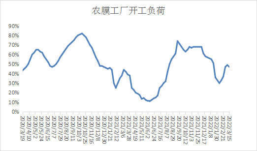 本周农膜开工负荷小幅下降,尽管地膜生产旺季临近,但是疫情升级影响下游开工,山东地区表现比较明显。