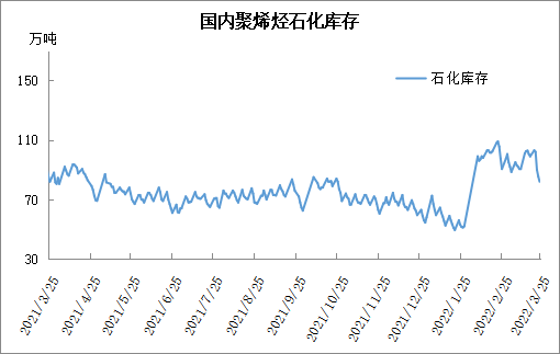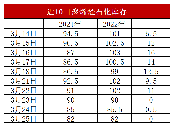 周五石化库存82万吨,较昨天下降3万吨,与去年同期持平。本周石化库存快速去库,周内去库20万吨,主要原因是前期两桶油库存预测出现误差,在开工率大幅下降的背景下,依然按照原来开工率推算,近期入库明显减少后库存大幅修正。目前聚烯烃下游依然偏弱维持刚需,但是开工率大幅下降,供应压力减少,所以库存压力暂时不大。