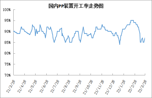 近期PP开工率维持低位。两桶油继续执行降负荷政策,并且执行基本到位,其他生产企业也普遍亏损,降负装置较多,加之常规检修增多,PP开工率维持低位,虽然今天小幅反弹,但是依然在90%以下,并且后期低位将成为常态。