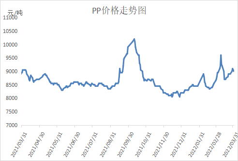 本周PP市场震荡回落,价格普遍跌破9000大关。油价高位回落跌破100美元大关,成本支撑减弱;PP虽然有检修利好,但是需求偏弱,疫情下终端需求雪上加霜,导致石化去库受阻,月底小幅累库。现货市场整体低迷,价格跟跌,目前价格普遍跌破9000元/吨大关。