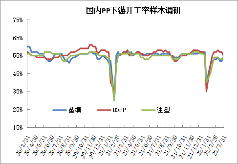 目前PP需求端整体偏弱。一方面目前是传统需求淡季,缺乏亮点,下游维持刚需为主,另一方面疫情使得终端需求雪上加霜,物流运输也受到限制。需求低迷成为PP上涨主要阻力,中下游采购积极性较低,后期疫情常态化下终端回补的弹性也不大。分地区来看,北方地区疫情得到控制,需求恢复,但是南方地区疫情扩散,停工企业增多。