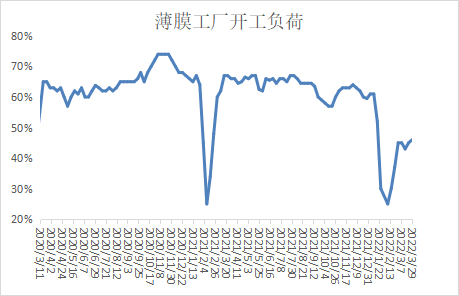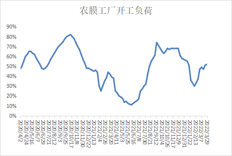 本周农膜开工负荷小幅反弹,地膜生产旺季,以及部分地区疫情略有缓解,物流运输有所恢复,下游开工负荷有所上升。