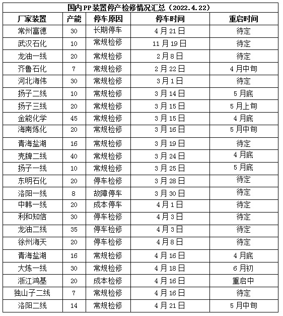2.PP检修装置较多,开工率维持低位。
